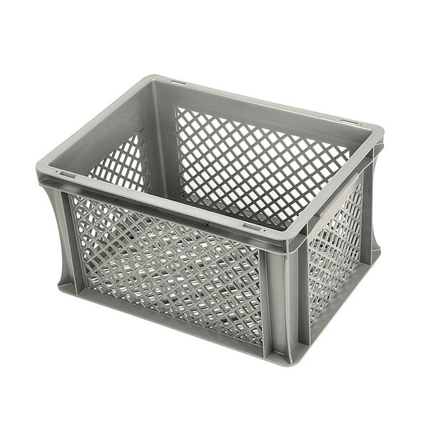 Stabile Eurobox aus PP-Kunststoff hergestellt mit perforiertem Boden und Seitenwänden. Die Eurobox ist daher besonders luft- und feuchtigkeitsdurchlässig. Die Kunststoffbox hat eine Kapazität von 20 Litern, ist stapelbar und trotz des geringen Gewichts von 920 g sehr stabil und widerstandsfähig. Die Eurobox ist optimal geeignet für das Handling im Lager, beim Transport auf einer Europalette oder auch auf Fördertechniken wie Rollenbahnen.