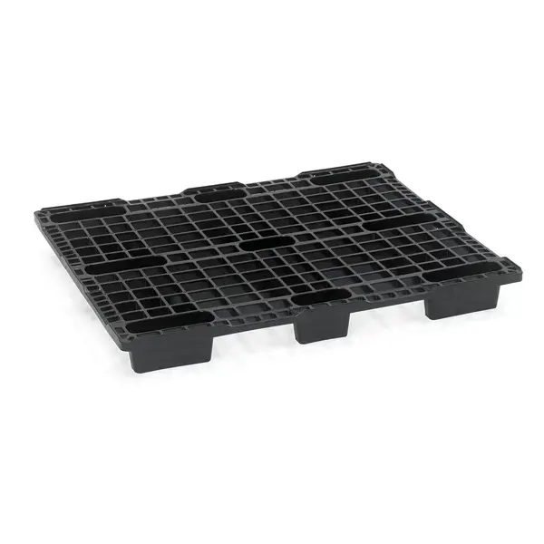 Diese schwarze Kunststoffpalette im Industriepalettenformat 1200x100x125mm hat ein Eigengewicht von 5,5 kg und eine dynamische Tragfähigkeit von 900 kg. Die Kunststoffpalette ist mit 9 Füßen ausgestattet und nestbar. Der erhöhte Sicherheitsrand verringert die Gefahr des Abrutschens von Ladungen und gewährleistet eine sichere Lagerung und einen sicheren Transport.